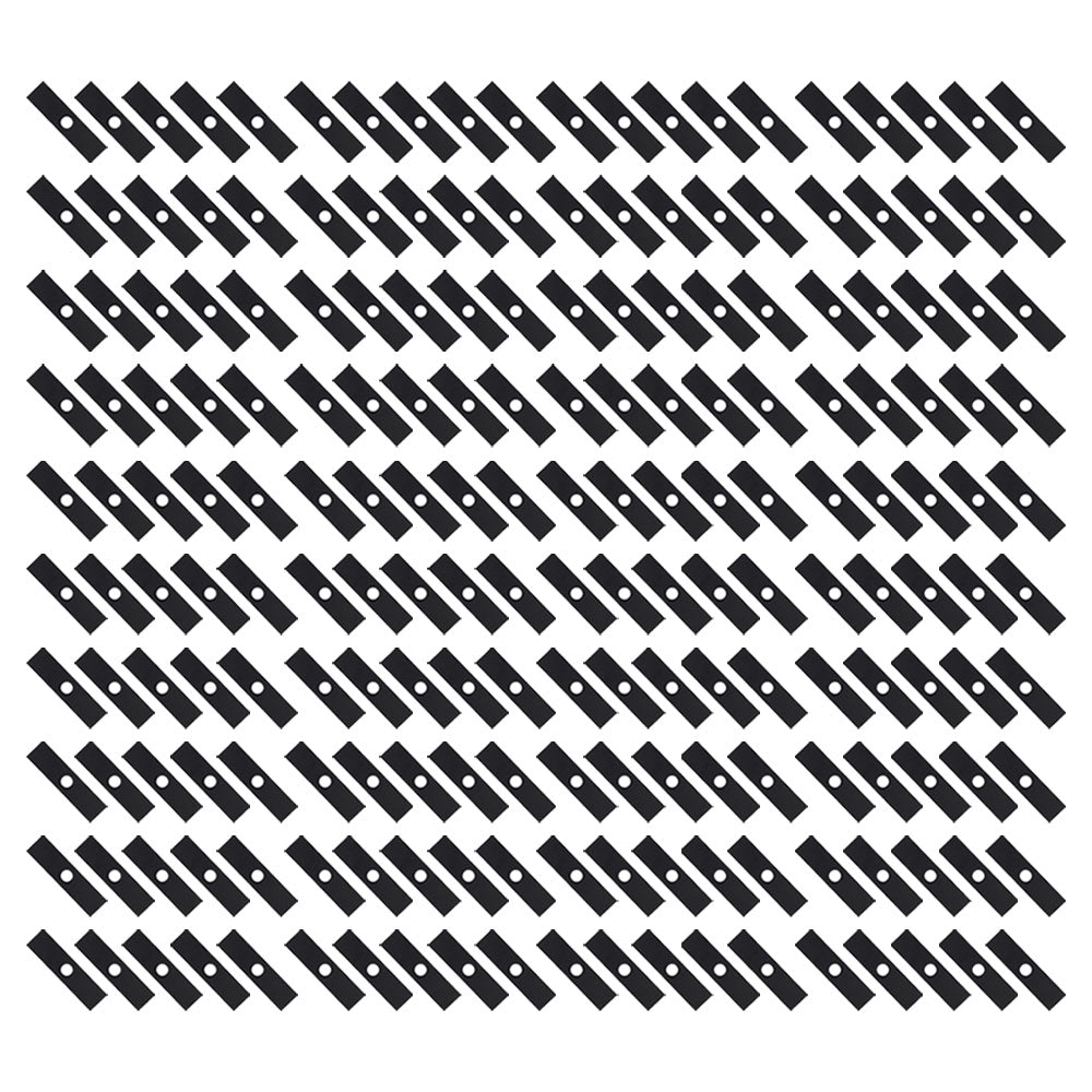 Quantity 200 Length: 8" Width: 2" Thickness: 0.125" Center Hole Diameter: 1" Finish: Yes (painted Black) Heat Treated: Yes Sharpened: No Heat Treated, Not SharpenedReference Numbers:
