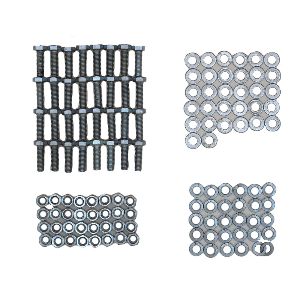 Kit Contains: (8) LH Tines, (8) RH Tines, (32) Cap Screws, (32) Nuts, (32) Lock Washers Hole size: 7/16'' Top center to bottom center: 3 1/8'' Center to center bottom two holes: 5 1/8'' Tiller Tine SetReference Numbers:
